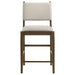 This counter-height dining chair combines modern design with elegant craftsmanship, making it a perfect addition to casual dining spaces. Upholstered in soft light tan fabric, it features foam-padded seating and a wrapped backrest with unique brown tie accents for a sophisticated touch. Tapered legs in a rich brown wood finish provide stability and complement the overall aesthetic. Constructed from Asian hardwood, engineered wood, fabric, and foam, this chair offers comfort and durability for everyday dining or entertaining.